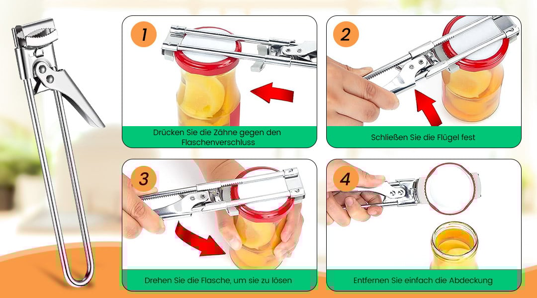 Dank des verstellbaren Designs der Clipöffnung können Sie Flaschenverschlüsse mit einem Durchmesser von 1 bis 10 cm problemlos abschrauben.